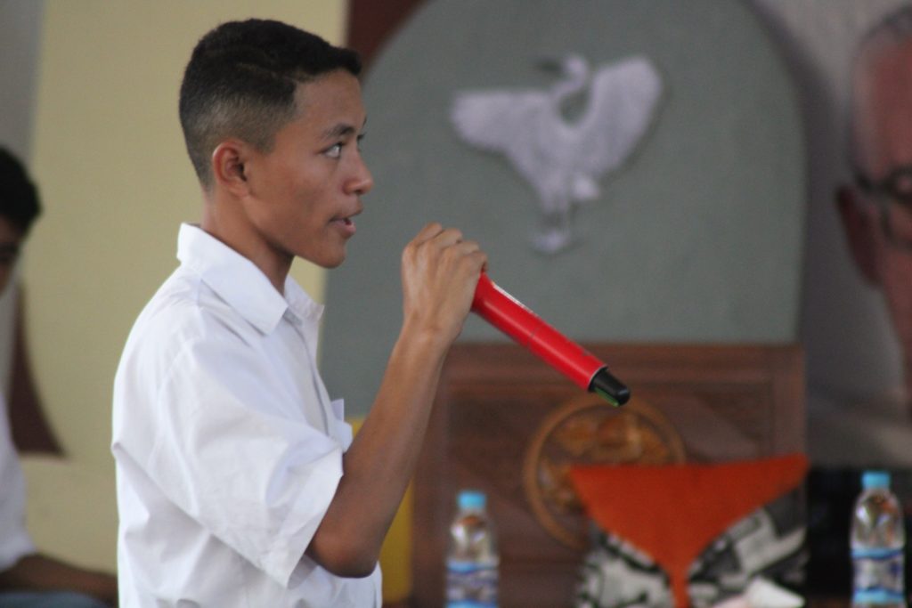 Di sela-sela diskusi, suster Valentia, CIJ, Kepala SMP Rosa Mistika Wae Rana merasa sangat bangga dan bahagia menyaksikan penampilan talk show dari pemateri. Hal ini disampaikannya ketika moderator memberikan kesempatan kepadanya untuk bertanya. “Saya tidak mengajukan pertanyaan, tapi saya mau mengungkapkan isi hati saya. Saya begitu terpukau dengan penampilan kalian. Saya kira penampilan kalian bukanlah level SMA melainkan sudah pada level anak mahasiswa. Kalian begitu luar biasa dan briliant menampilkan dan memaparkan hasil penelitian kalian. Ini seperti penampilan mas Rocky Gerung”, terang Suster Valentia, CIJ.